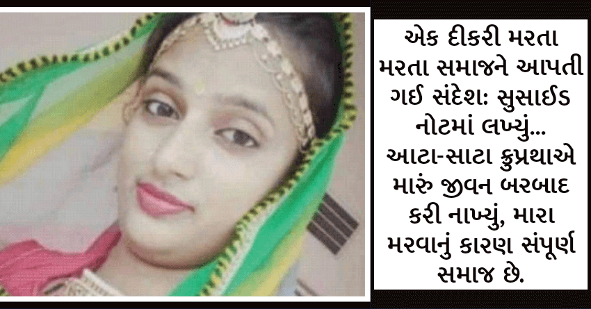 એક દીકરી મરતા મરતા સમાજને આપતી ગઈ સંદેશ: સુસાઈડ નોટમાં લખ્યું… આટા-સાટા ક્રુપ્રથાએ મારું જીવન બરબાદ કરી નાખ્યું, મારા મરવાનું કારણ સંપૂર્ણ સમાજ છે