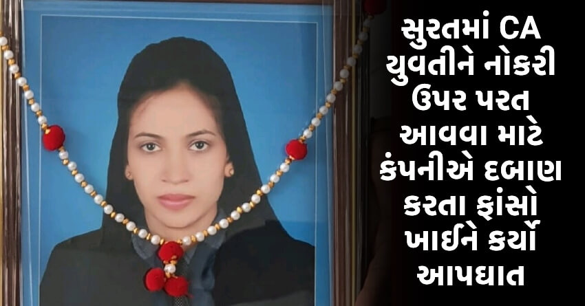 સુરતમાં CA યુવતીને નોકરી ઉપર પરત આવવા માટે કંપનીએ દબાણ કરતા ફાંસો ખાઈને કર્યો આપઘાત