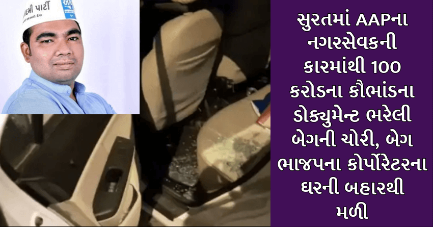 સુરતમાં AAPના નગરસેવકની કારમાંથી 100 કરોડના કૌભાંડના ડોક્યુમેન્ટ ભરેલી બેગની ચોરી, બેગ ભાજપના કોર્પોરેટરના ઘરની બહારથી મળી