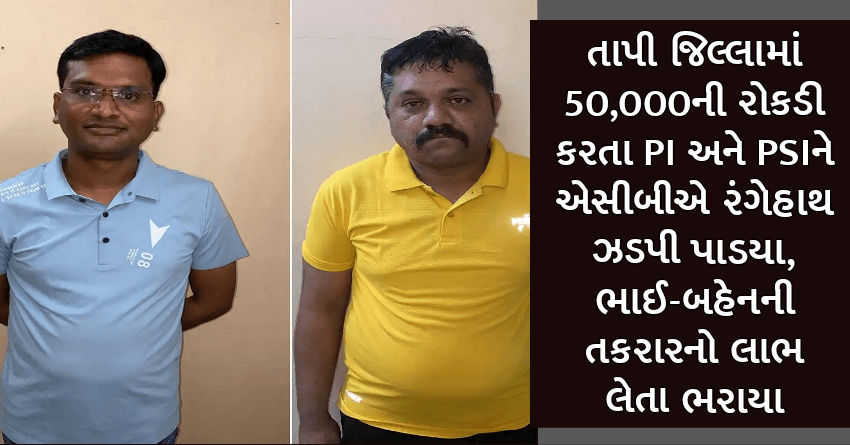 તાપી જિલ્લામાં 50,000ની રોકડી કરતા PI અને PSIને એસીબીએ રંગેહાથ ઝડપી પાડયા, ભાઈ-બહેનની તકરારનો લાભ લેતા ભરાયા