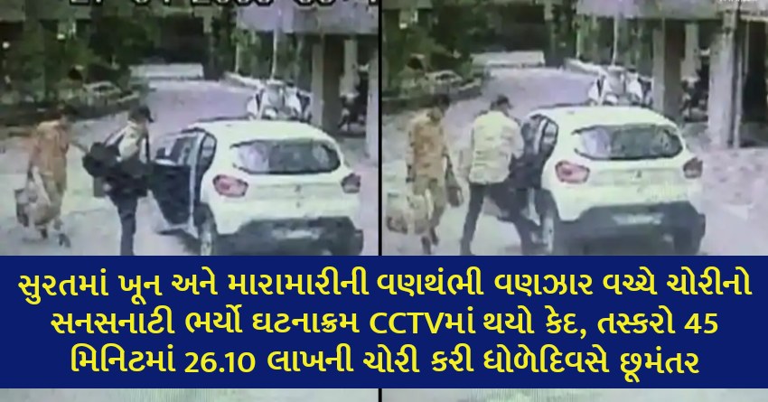 સુરતમાં ખૂન અને મારામારીની વણથંભી વણઝાર વચ્ચે ચોરીનો સનસનાટી ભર્યો ઘટનાક્રમ CCTVમાં થયો કેદ, તસ્કરો 45 મિનિટમાં 26.10 લાખની ચોરી કરી ધોળેદિવસે છૂમંતર