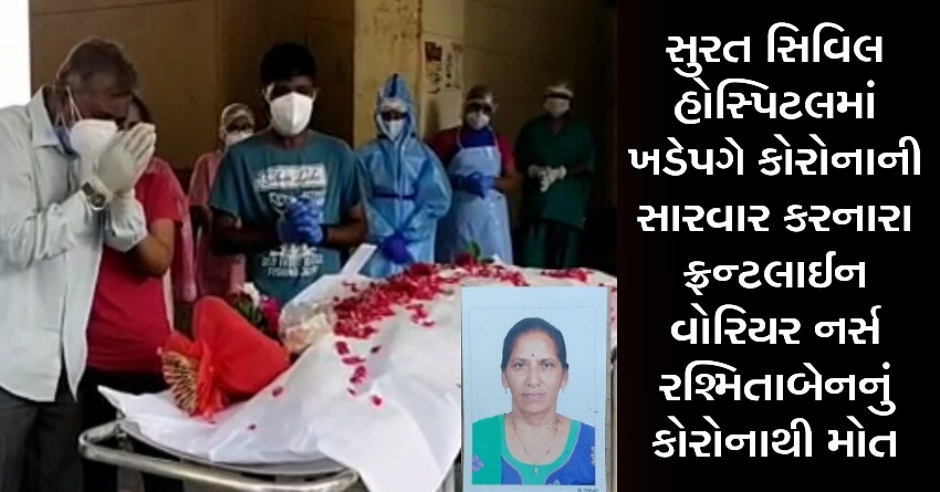 સુરત સિવિલ હોસ્પિટલમાં ખડેપગે કોરોનાની સારવાર કરનારા ફ્રન્ટલાઈન વોરિયર નર્સ રશ્મિતાબેનનું કોરોનાથી મોત