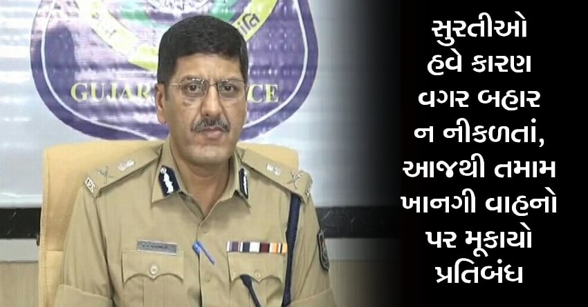 સુરતીઓ હવે કારણ વગર બહાર ન નીકળતાં, આજથી તમામ ખાનગી વાહનો પર મૂકાયો પ્રતિબંધ