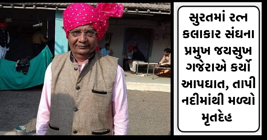 સુરતમાં રત્ન કલાકાર સંઘના પ્રમુખ જયસુખ ગજેરાએ કર્યો આપઘાત, તાપી નદીમાંથી મળ્યો મૃતદેહ