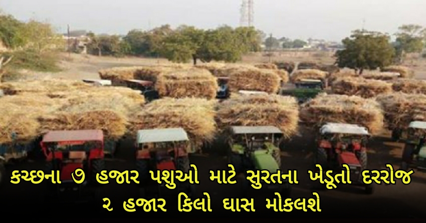 અપૂરતા વરસાદના કારણે જગતનો તાત લાચાર છે. તેમાં પણ કચ્છના ખેડૂતો-પશુપાલકોની સ્થિતિ ખૂબ દયનીય છે. પાણી અને ઘાસની તંગી સર્જાતાં કચ્છમાંથી પશુપાલકો 7 હજાર પશુઓને લઈ અમદાવાદ નજીક સાણંદ ખાતે પહોંચ્યા છે. ત્યાં ઘાસની તંગી હોવાની જાણ દક્ષિણ ગુજરાતના ખેડૂત અગ્રણીઓને થઈ હતી. આથી ખેડૂત સમાજના એક પ્રતિનિધિ મંડળે ત્યાં જઈ પરિસ્થિતિનો અભ્યાસ કર્યો. બાદ ખેડૂત સમાજે સુરતમાં બેઠક કરી જેમાં પ્રતિદિન બે હજાર કિલો ઘાસ સુરતથી સાણંદ મોકલવાનો અનુકરણીય અને આવકારદાયી નિર્ણય લેવાયો હતો.
