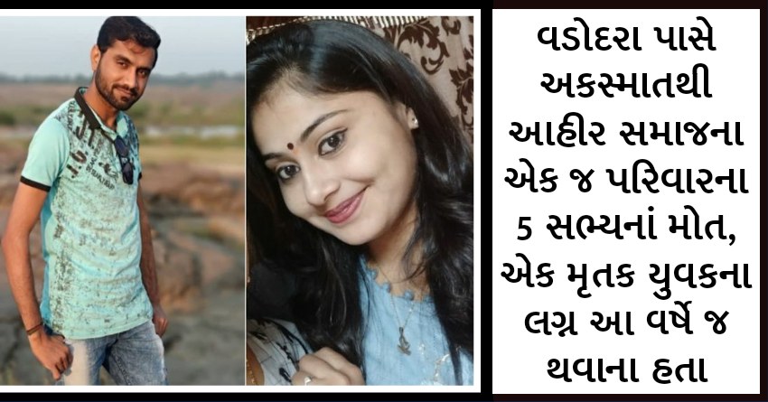 વડોદરા પાસે અકસ્માતથી આહીર સમાજના એક જ પરિવારના 5 સભ્યનાં મોત, એક મૃતક યુવકના લગ્ન આ વર્ષે જ થવાના હતા