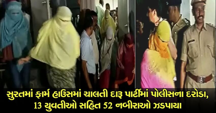 સુરતમાં ફાર્મ હાઉસમાં ચાલતી દારૂ પાર્ટીમાં પોલીસના દરોડા, 13 યુવતીઓ સહિત 52 નબીરાઓ ઝડપાયા
