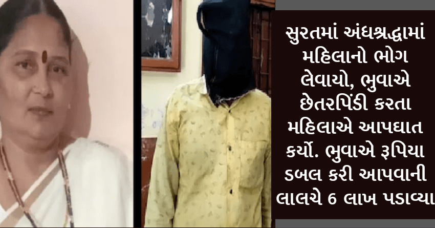 સુરતમાં અંધશ્રદ્ધામાં મહિલાનો ભોગ લેવાયો, ભુવાએ છેતરપિંડી કરતા મહિલાએ આપઘાત કર્યો. ભુવાએ રૂપિયા ડબલ કરી આપવાની લાલચે 6 લાખ પડાવ્યા