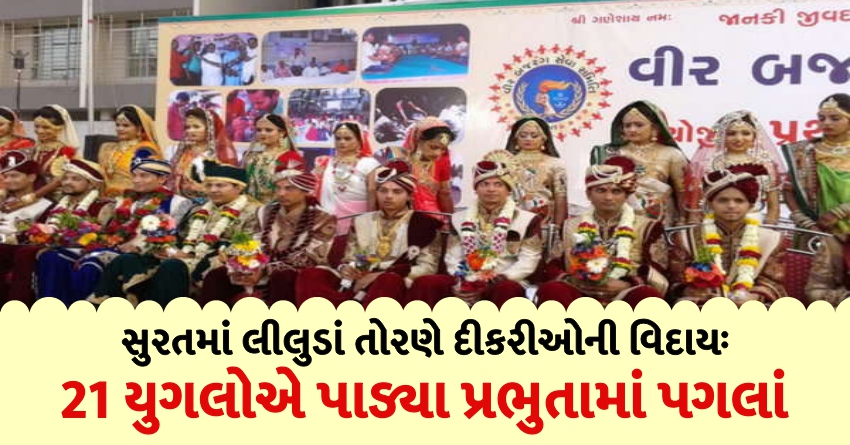 સુરતમાં લીલુડાં તોરણે દીકરીઓની વિદાયઃ 21 યુગલોએ પાડ્યા પ્રભુતામાં પગલાં