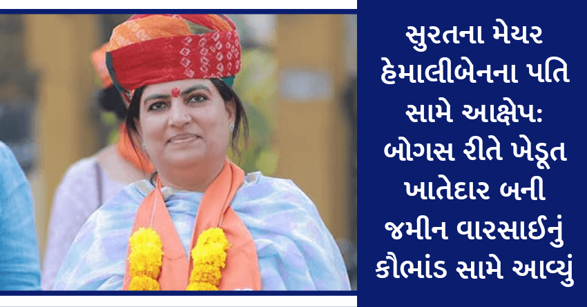 સુરતના મેયર હેમાલીબેનના પતિ સામે આક્ષેપ: બોગસ રીતે ખેડૂત ખાતેદાર બની જમીન વારસાઈનું કૌભાંડ સામે આવ્યું
