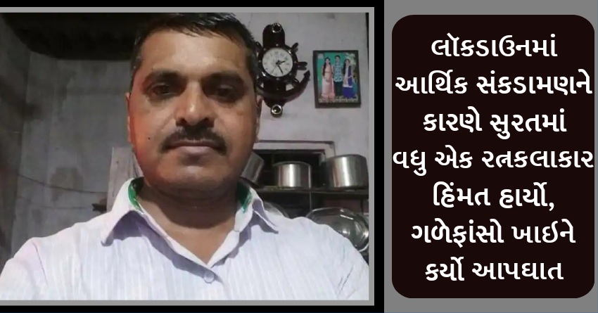 લૉકડાઉનમાં આર્થિક સંકડામણને કારણે સુરતમાં વધુ એક રત્નકલાકાર હિંમત હાર્યો, ગળેફાંસો ખાઇને કર્યો આપઘાત