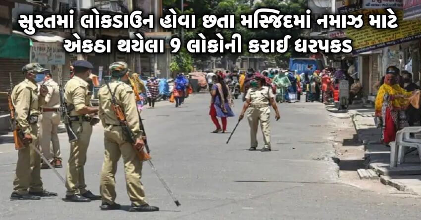 સુરતમાં લોકડાઉન હોવા છતા મસ્જિદમાં નમાઝ માટે એકઠા થયેલા 9 લોકોની કરાઈ ધરપકડ