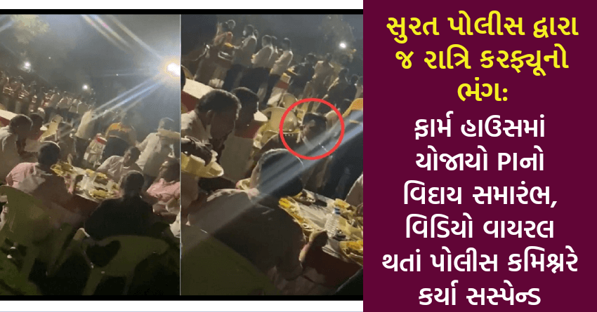 સુરત પોલીસ દ્વારા જ રાત્રિ કરફ્યૂનો ભંગ: ફાર્મ હાઉસમાં યોજાયો PIનો વિદાય સમારંભ, વિડિયો વાયરલ થતાં પોલીસ કમિશ્નરે કર્યા સસ્પેન્ડ