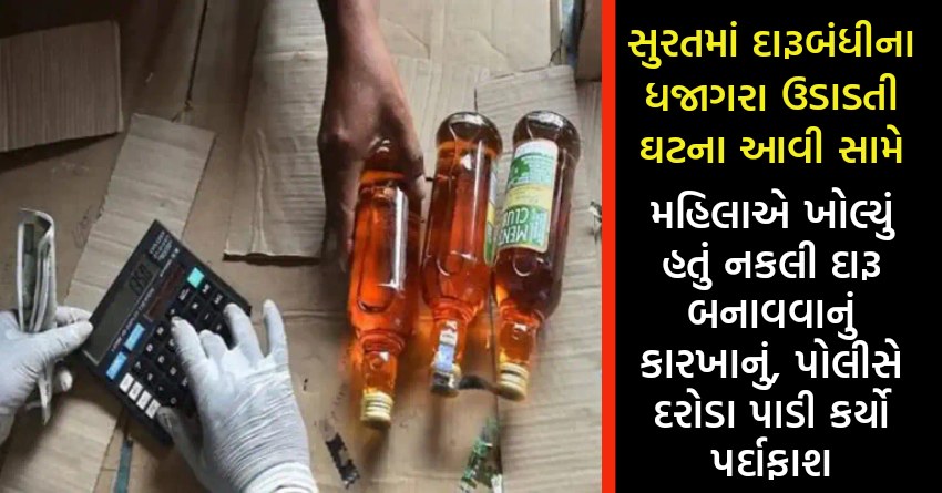 સુરતમાં દારૂબંધીના ધજાગરા ઉડાડતી ઘટના આવી સામે: મહિલાએ ખોલ્યું હતું નકલી દારૂ બનાવવાનું કારખાનું, પોલીસે દરોડા પાડી કર્યો પર્દાફાશ