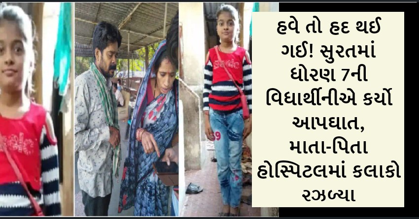 હવે તો હદ થઈ ગઈ! સુરતમાં ધોરણ 7ની વિધાર્થીનીએ કર્યો આપઘાત, માતા-પિતા હોસ્પિટલમાં કલાકો રઝળ્યા