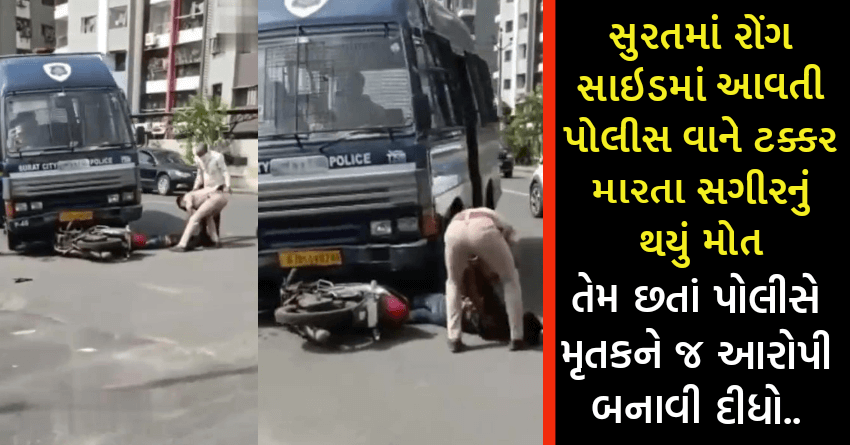 સુરતમાં રોંગ સાઇડમાં આવતી પોલીસ વાને ટક્કર મારતા સગીરનું થયું મોત, તેમ છતાં પોલીસે મૃતકને જ આરોપી બનાવી દીધો.