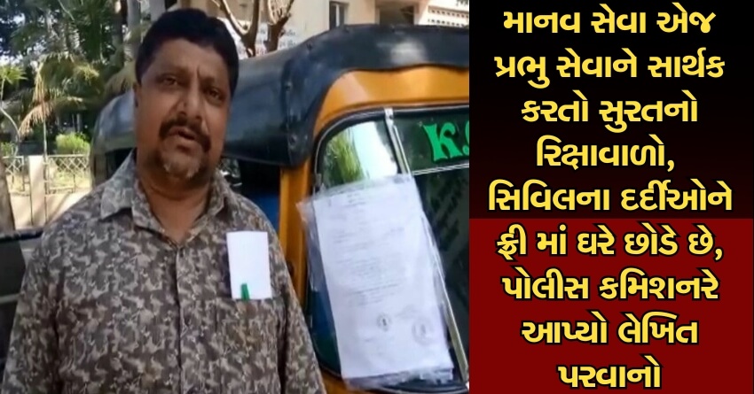 માનવ સેવા એજ પ્રભુ સેવાને સાર્થક કરતો સુરતનો ખલીલ રિક્ષાવાળો, સિવિલના દર્દીઓને ફ્રી માં ઘરે છોડે છે, પોલીસ કમિશનર-કલેક્ટરે આપ્યો લેખિત પરવાનો