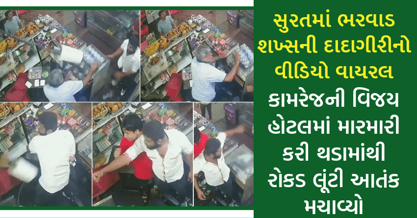 સુરતમાં ભરવાડ શખ્સની દાદાગીરીનો વીડિયો વાયરલ, કામરેજની વિજય હોટલમાં મારમારી કરી થડામાંથી રોકડ લૂંટી આતંક મચાવ્યો