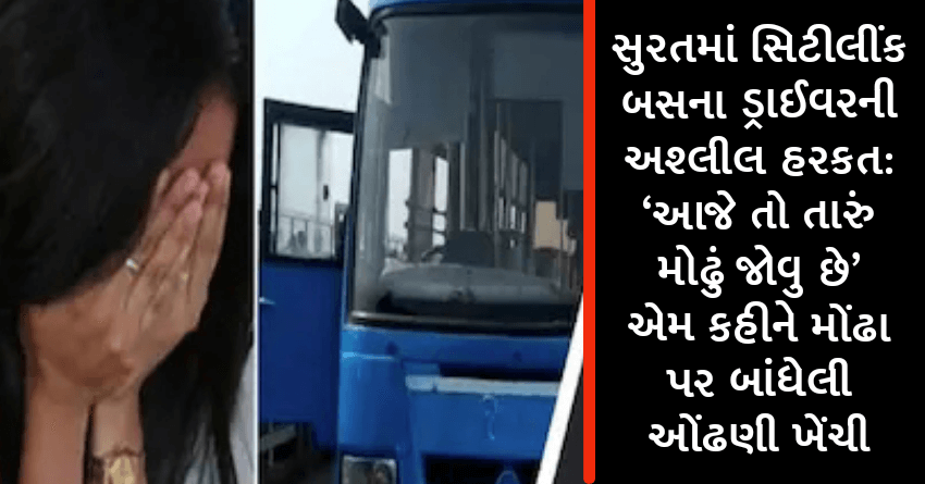 સુરતમાં સિટીલીંક બસના ડ્રાઈવરની અશ્લીલ હરકત: ‘આજે તો તારું મોઢું જોવુ છે’ એમ કહીને મોંઢા પર બાંધેલી ઓંઢણી ખેંચી