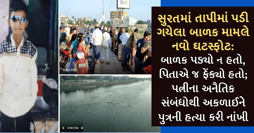 સુરતમાં તાપીમાં પડી ગયેલા બાળક મામલે નવો ઘટસ્ફોટ: બાળક પડ્યો ન હતો, પિતાએ જ ફેંક્યો હતો; પત્નીના અનૈતિક સંબંધોથી અકળાઈને પુત્રની હત્યા કરી નાંખી