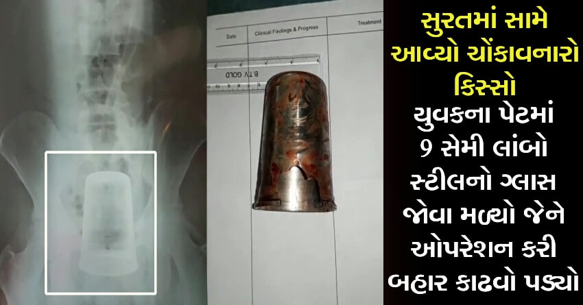 સુરતમાં સામે આવ્યો ચોંકાવનારો કિસ્સો: યુવકના પેટમાં 9 સેમી લાંબો સ્ટીલનો ગ્લાસ જોવા મળ્યો જેને ઓપરેશન કરી બહાર કાઢવો પડ્યો