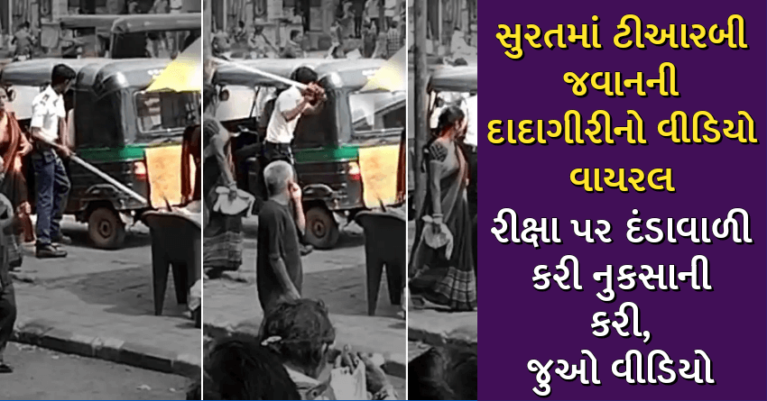 સુરતમાં ટીઆરબી જવાનની દાદાગીરીનો વીડિયો વાયરલ, રીક્ષા પર દંડાવાળી કરી નુકસાની કરી, જુઓ વીડિયો