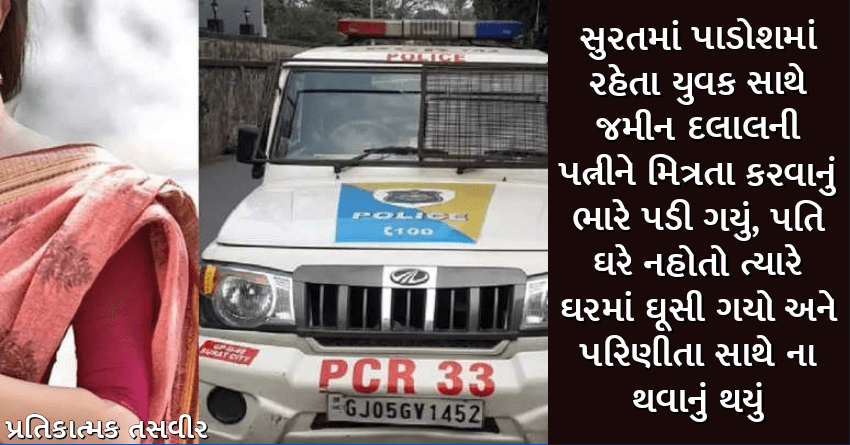 સુરતમાં પાડોશમાં રહેતા યુવક સાથે જમીન દલાલની પત્નીને મિત્રતા કરવાનું ભારે પડી ગયું, પતિ ઘરે નહોતો ત્યારે ઘરમાં ઘૂસી ગયો અને પરિણીતા સાથે ના થવાનું થયું