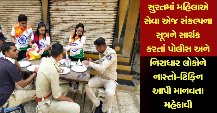 સુરતમાં મહિલાએ સેવા એજ સંકલ્પના સૂત્રને સાર્થક કરતાં પોલીસ અને નિરાધાર લોકોને નાસ્તો-ટિફિન આપી માનવતા મહેકાવી