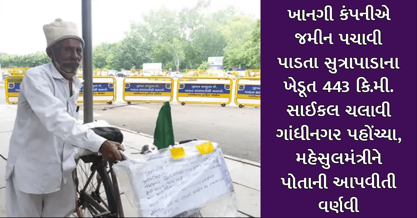 ખાનગી કંપનીએ જમીન પચાવી પાડતા સુત્રાપાડાના ખેડૂત 443 કિ.મી. સાઈકલ ચલાવી ગાંધીનગર પહોંચ્યા, મહેસુલમંત્રીને પોતાની આપવીતી વર્ણવી