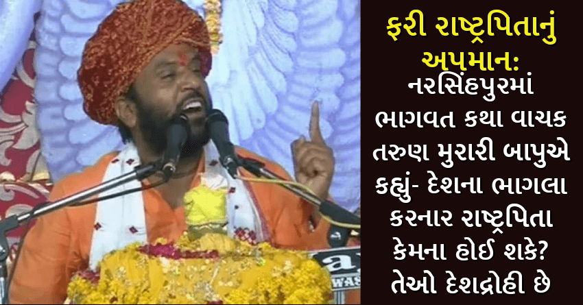 ફરી રાષ્ટ્રપિતાનું અપમાન: નરસિંહપુરમાં ભાગવત કથા વાચક તરુણ મુરારી બાપુએ કહ્યું- દેશના ભાગલા કરનાર રાષ્ટ્રપિતા કેમના હોઈ શકે? તેઓ દેશદ્રોહી છે