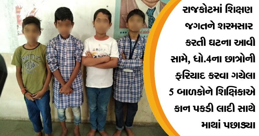 રાજકોટમાં શિક્ષણ જગતને શરમસાર કરતી ઘટના આવી સામે, ધો.4ના છાત્રોની ફરિયાદ કરવા ગયેલા 5 બાળકોને શિક્ષિકાએ કાન પકડી લાદી સાથે માથાં પછાડ્યા