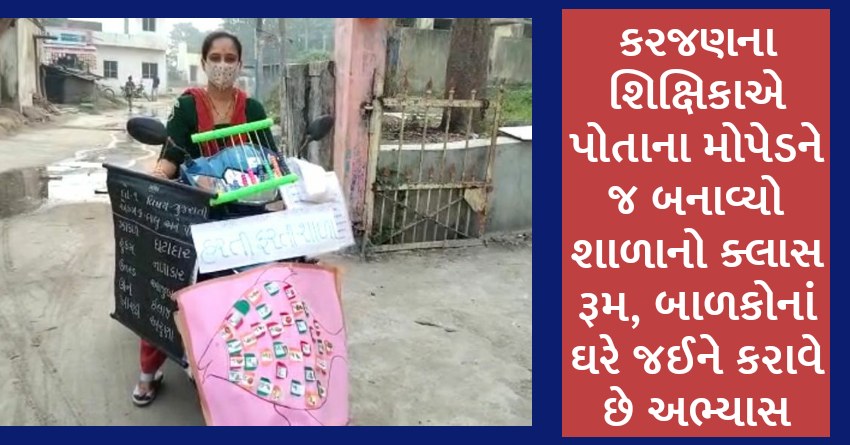 કરજણના શિક્ષિકાએ પોતાના મોપેડને જ બનાવ્યો શાળાનો ક્લાસ રૂમ, બાળકોનાં ઘરે જઈને કરાવે છે અભ્યાસ