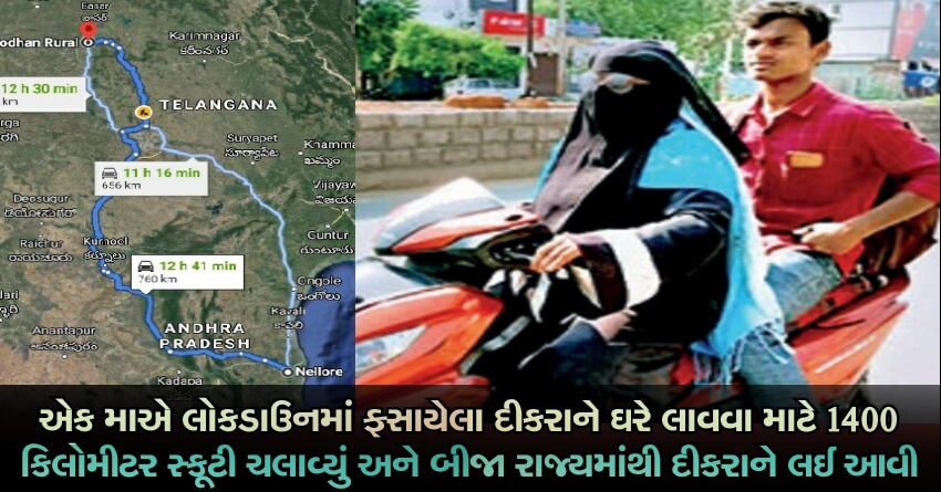 એક માએ લોકડાઉનમાં ફસાયેલા દીકરાને ઘરે લાવવા માટે 1400 કિલોમીટર સ્કૂટી ચલાવ્યું અને બીજા રાજ્યમાંથી દીકરાને લઈ આવી