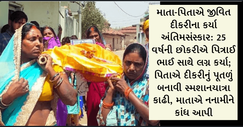 માતા-પિતાએ જીવિત દીકરીના કર્યા અંતિમસંસ્કાર: 25 વર્ષની છોકરીએ પિત્રાઈ ભાઈ સાથે લગ્ન કર્યા; પિતાએ દીકરીનું પૂતળું બનાવી સ્મશાનયાત્રા કાઢી, માતાએ નનામીને કાંધ આપી