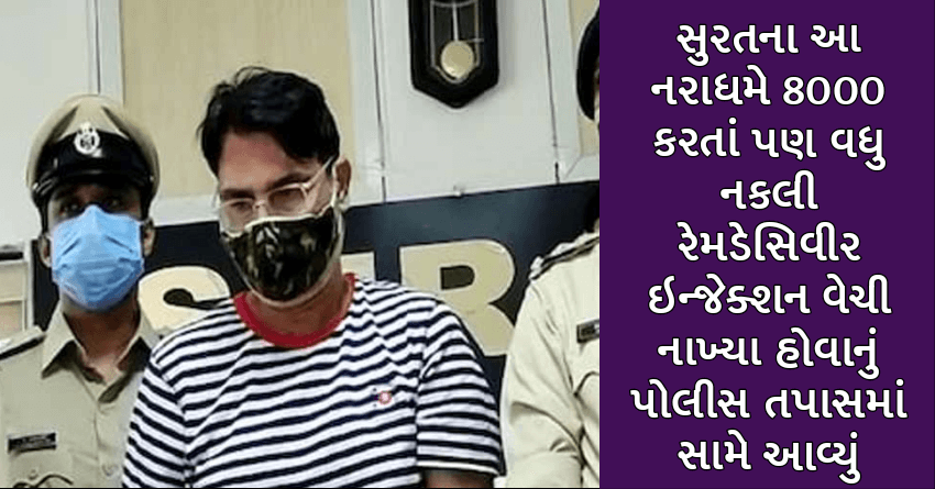 સુરતના આ નરાધમે 8000 કરતાં પણ વધુ નકલી રેમડેસિવીર ઇન્જેક્શન વેચી નાખ્યા હોવાનું પોલીસ તપાસમાં સામે આવ્યું