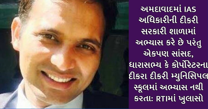 અમદાવાદમાં IAS અધિકારીની દીકરી સરકારી શાળામાં અભ્યાસ કરે છે પરંતુ એકપણ સાંસદ, ધારાસભ્ય કે કોર્પોરેટરના દીકરા દીકરી મ્યુનિસિપલ સ્કૂલમાં અભ્યાસ નથી કરતા: RTIમાં ખુલાસો
