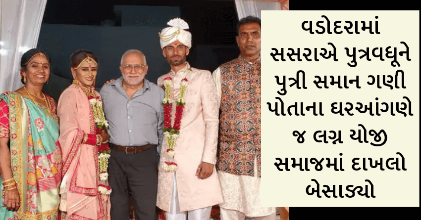 વડોદરામાં સસરાએ પુત્રવધૂને પુત્રી સમાન ગણી પોતાના ઘરઆંગણે જ લગ્ન યોજી સમાજમાં દાખલો બેસાડ્યો
