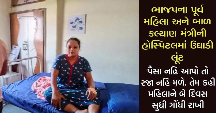 ભાજપના પૂર્વ મહિલા અને બાળ કલ્યાણ મંત્રીની હોસ્પિટલમાં ઉઘાડી લૂંટ, પૈસા નહિ આપો તો રજા નહિ મળે. તેમ કહી મહિલાને બે દિવસ સુધી ગોંધી રાખી