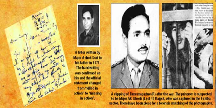 એ સમયે ભારતના ૫૪ સૈનિકો ગુમ થયા હતા અને એ પાકિસ્તાનના કબજામાં હોવાની વ્યાપક માન્યતા હતા. અનેક લશ્કરી અને સરકારી અધિકારીઓ માનતા હતા કે એ સૈનિકો પાકિસ્તાનના કબજામાં જ છે. જ્યારે પાકિસ્તાનનો દાવો હતો કે અમારા કબજામાં આવા કોઈ સૈનિકો નથી. પાકિસ્તાન ત્યારે ખોટું બોલતુ હતુ, તેનો પૂરાવો યુદ્ધના દસ દિવસ પછી જ મળી ગયો હતો. ૧૭મી ડિસેમ્બરે યુદ્ધ ખતમ થયા પછી ૨૭મી ડિસેમ્બરના અમેરિકાના વિશ્વવિખ્યાત અને પ્રતિષ્ઠિત ‘ટાઈમ’ મેગેઝિને અહેવાલ છાપ્યો હતો કે ભારતના ૫૪ કેદીઓ પાકિસ્તાને પકડી રાખ્યા છે. એ અહેવાલ સાથે જેલના સળિયા પાછળ ઉભેલા એક ભારતીય સૈનિકનો ફોટો છપાયો હતો. એ ફોટો જોઈને ભારતના સૈનિકો તુરંત ઓળખી ગયા કે એ મેજર અશોકકુમાર ઘોષ છે. એક મેજરનો ફોટો આવ્યો તેનો મતલબ એ હતો કે અન્ય સૈનિકો ત્યાં જ હતા. તો પણ પાકિસ્તાને એ વાત સ્વીકારી નહીં.