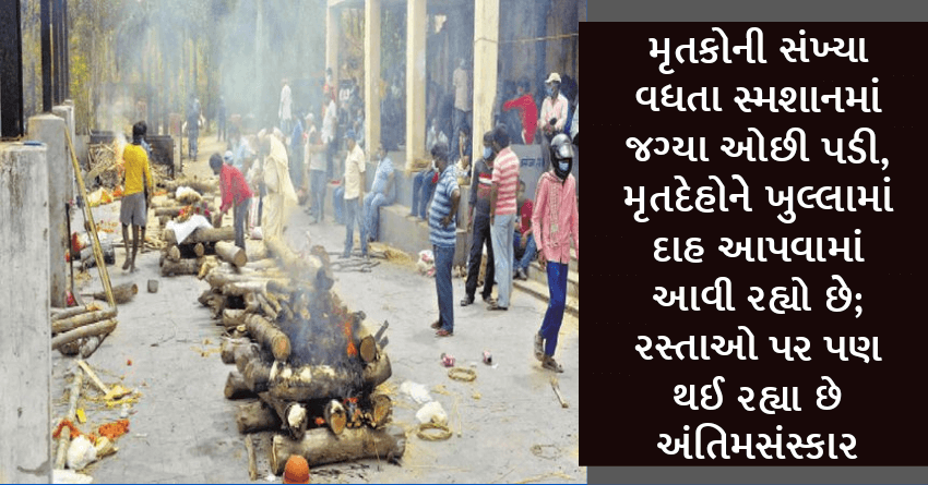 મૃતકોની સંખ્યા વધતા સ્મશાનમાં જગ્યા ઓછી પડી, મૃતદેહોને ખુલ્લામાં દાહ આપવામાં આવી રહ્યો છે; રસ્તાઓ પર પણ થઈ રહ્યા છે અંતિમસંસ્કાર