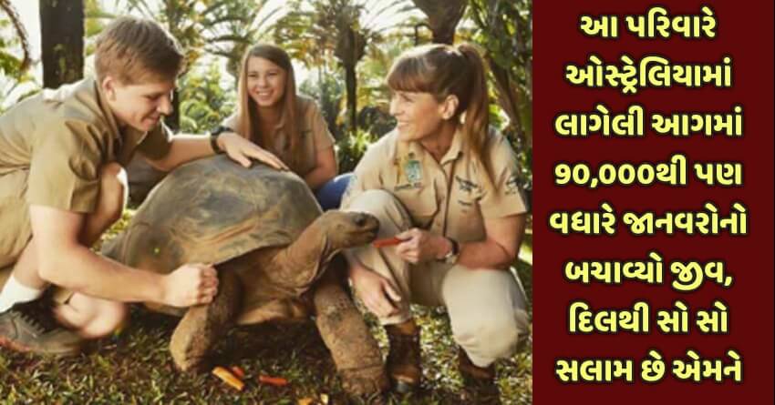 સ્ટીવ ઈરવિન એક વન્યજીવ સંરક્ષણકર્તા છે. જો કે હાલમાં તો એ દુનિયામાં નથી રહ્યા. પરંતુ તેના પરિવારે એક ગજબનું કામ કર્યું છે. તેણે ઓસ્ટ્રેલિયામાં લાગેલી આગમાં ફસાયેલા 90,000થી પણ વધારે જાનવરોનો જીવ બચાવ્યો છે અને એક નવી દુનિયા આપી છે.