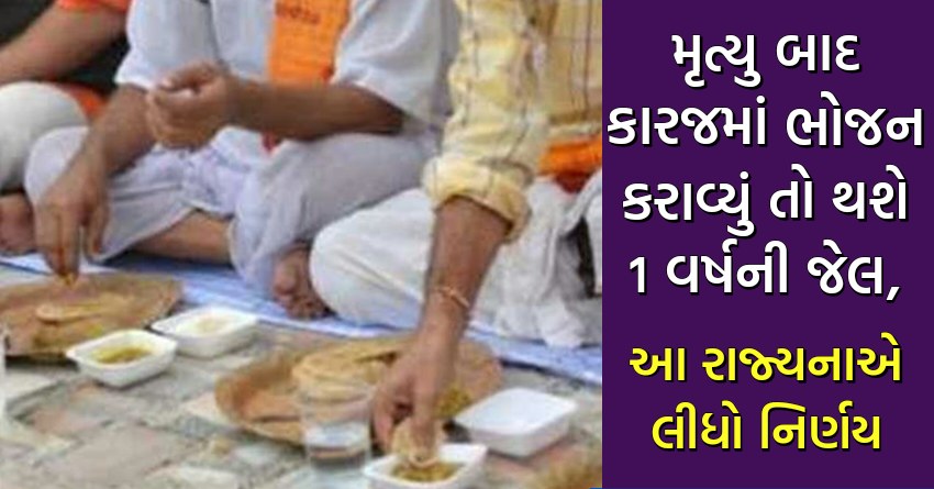 મૃત્યુ બાદ કારજમાં ભોજન કરાવ્યું તો થશે 1 વર્ષની જેલ, આ રાજ્યનાએ લીધો નિર્ણય