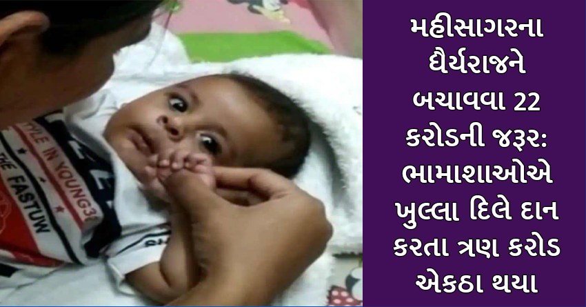 મહીસાગરના ધૈર્યરાજને બચાવવા 22 કરોડની જરૂર: ભામાશાઓએ ખુલ્લા દિલે દાન કરતા ત્રણ કરોડ એકઠા થયા