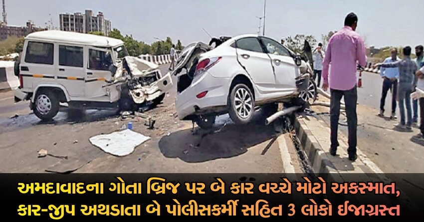 અમદાવાદના ગોતા બ્રિજ પર બે કાર વચ્ચે મોટો અકસ્માત, કાર-જીપ અથડાતા બે પોલીસકર્મી સહિત 3 લોકો ઈજાગ્રસ્ત