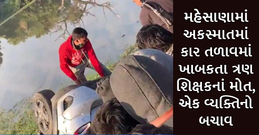 મહેસાણામાં અકસ્માતમાં કાર તળાવમાં ખાબકતા ત્રણ શિક્ષકનાં મોત, એક વ્યક્તિનો બચાવ