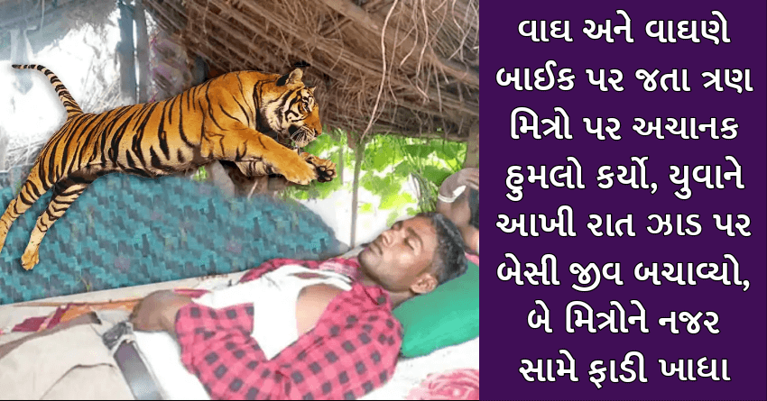 વાઘ અને વાઘણે બાઈક પર જતા ત્રણ મિત્રો પર અચાનક હુમલો કર્યો, યુવાને આખી રાત ઝાડ પર બેસી જીવ બચાવ્યો, બે મિત્રોને નજર સામે ફાડી ખાધા