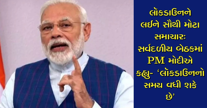 લૉકડાઉનને લઈને સૌથી મોટા સમાચાર :સર્વદળીય બેઠકમાં PM મોદીએ કહ્યુ- ‘લૉકડાઉનનો સમય વધી શકે છે’