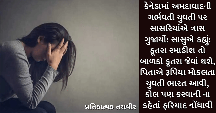 કેનેડામાં અમદાવાદની ગર્ભવતી યુવતી પર સાસરિયાંએ ત્રાસ ગુજાર્યો: સાસુએ કહ્યું: કૂતરા રમાડીશ તો બાળકો કૂતરા જેવાં થશે, પિતાએ રૂપિયા મોકલતા યુવતી ભારત આવી, કોલ પણ કરવાની ના કહેતાં ફરિયાદ નોંધાવી