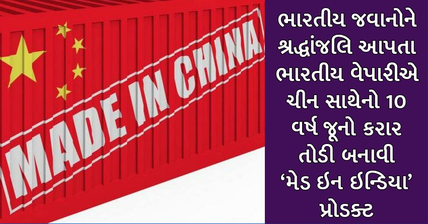 ભારતીય જવાનોને શ્રદ્ધાંજલિ આપતા ભારતીય વેપારીએ ચીન સાથેનો 10 વર્ષ જૂનો કરાર તોડી બનાવી ‘મેડ ઇન ઇન્ડિયા’ પ્રોડક્ટ