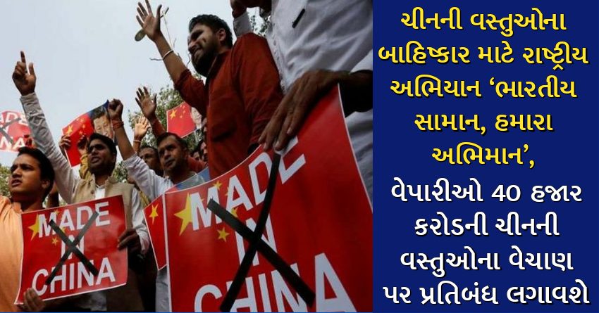 ચીનની વસ્તુઓના બાહિષ્કાર માટે રાષ્ટ્રીય અભિયાન ‘ભારતીય સામાન, હમારા અભિમાન’, વેપારીઓ 40 હજાર કરોડની ચીનની વસ્તુઓના વેચાણ પર પ્રતિબંધ લગાવશે